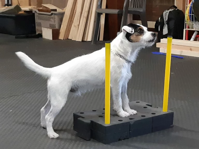 Beim Körpertraining wird das Körperbewusstsein der Hunde gefördert. Dieses propriozeptive Training umfasst unterschiedliche Übungen, durch die der Hund lernt, wo er im dreidimensionalen Raum steht, wie er auf unterschiedlichen Untergründen Balance halten kann, wie er einzelne Beine gezielt bewegen oder die Hinterbeine einsetzen kann. Die Tiefenmuskulatur wird gestärkt, außerdem werden Verletzungen vorgebeugt. Unterschiedliche Untergründe im Alltag stellen keine Hindernisse mehr für den Hund dar.